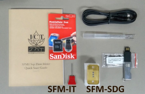 ヒートレシオセンサ インストレーションキット | ドリルガイド小、 1.3 mm x 75 mm ロングドリルビット10本、マイクロSDカードアダプタ、 SFM-IT ダミープローブ |